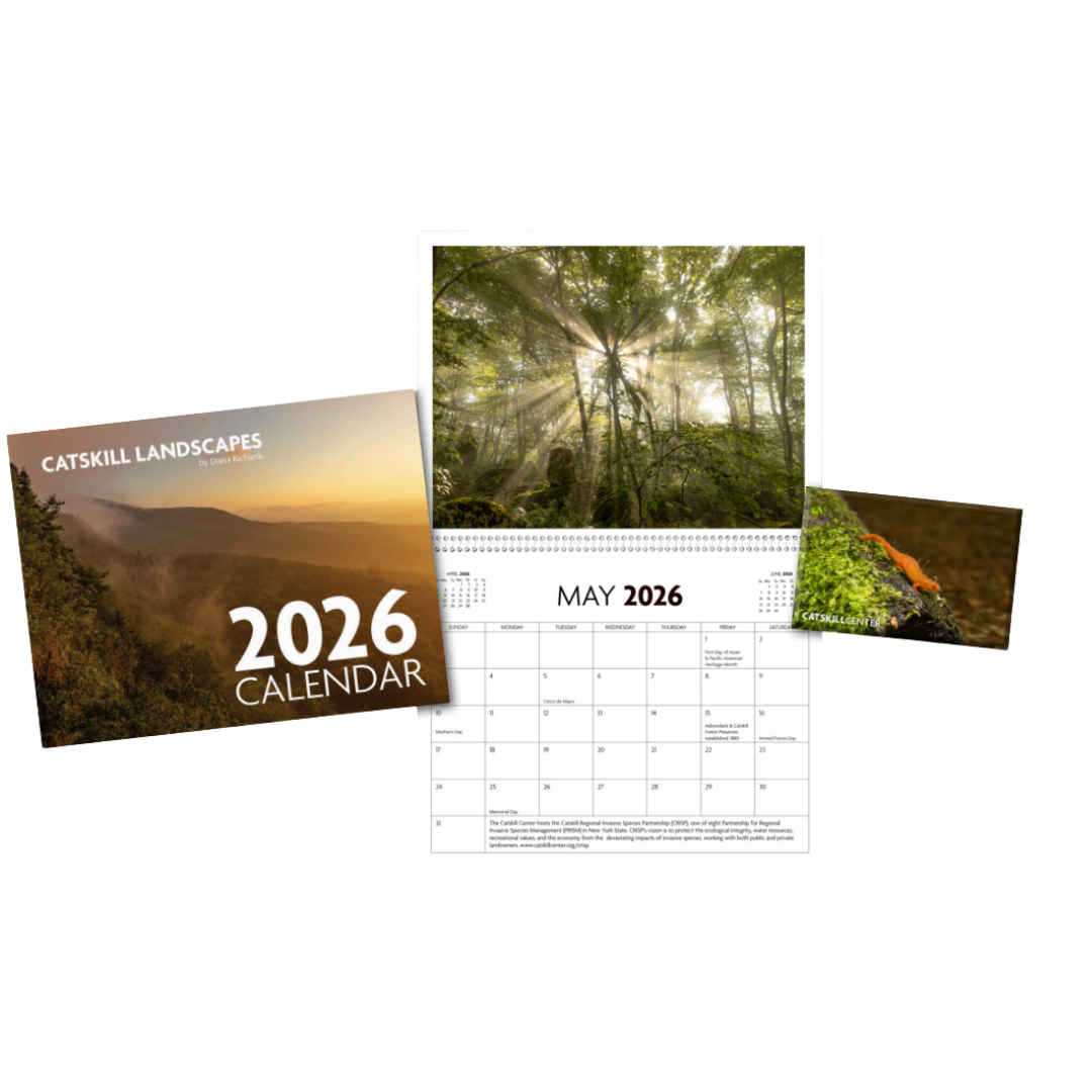 When you donate $250 or more, we will gift you our 2026 Calendar featuring stunning Catskills landscapes as photographed by Diana Richards. When you donate $100 or more, we will gift you a magnet featuring a Red Eft photo by Diana Richards.